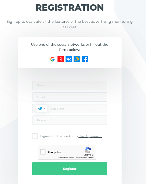 To start using the service, go to the Spy.House website and click the “Registration” icon in the upper right corner.