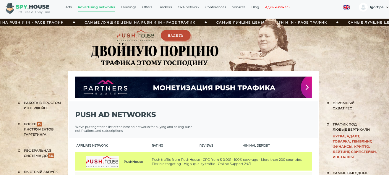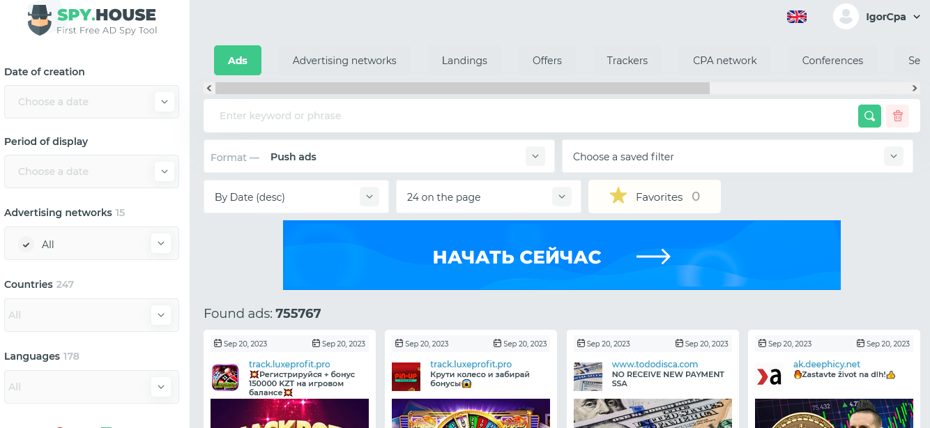 Spy.House is a valuable tool for managing traffic. It not only saves you time and money on searching and testing creatives but also keeps you informed about current offers and approaches to their promotion.