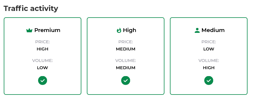 One thing to keep in mind: the newer the subscription, the higher the traffic cost. So, Premium segment traffic will cost more than Medium. Make sure to consider this when planning your budget.