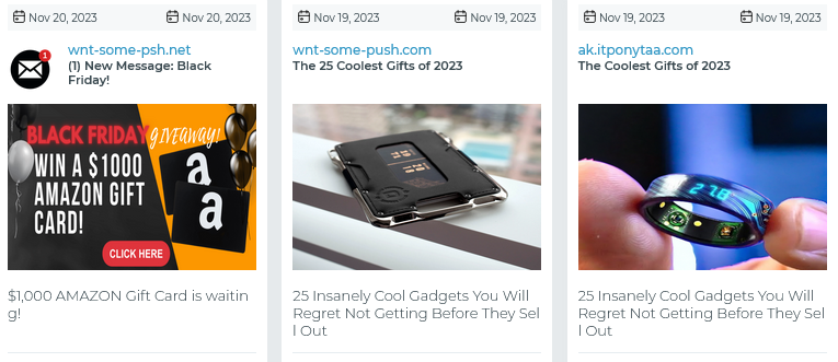 A message informing users they’ve received a gift that can be claimed by clicking a link. This classic approach in sweepstakes advertising emphasizes the opportunity to receive a gift without explicitly mentioning the giveaway.